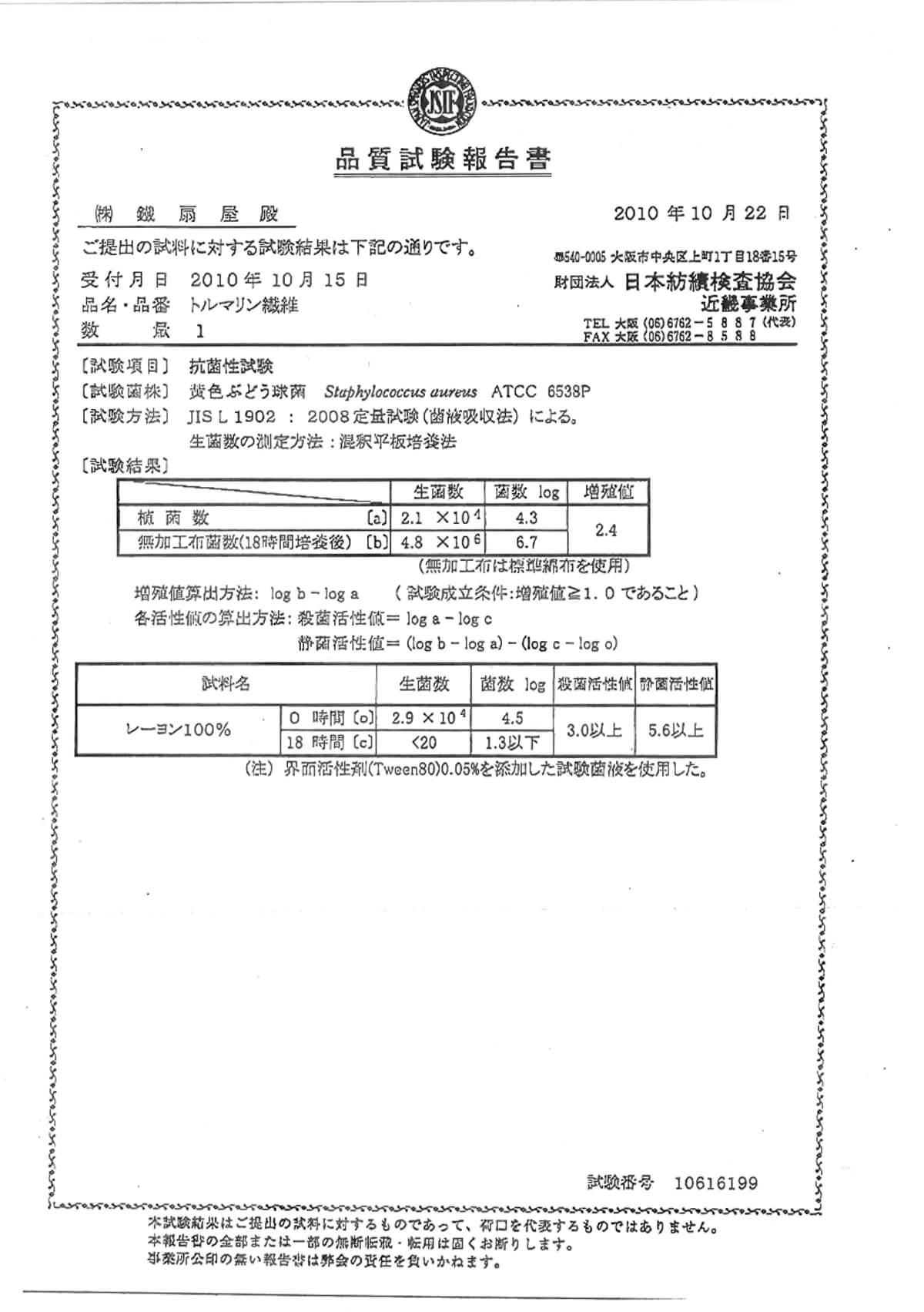 〔試験方法〕JIS L 1902:2008定量試験(菌液吸収法)による。